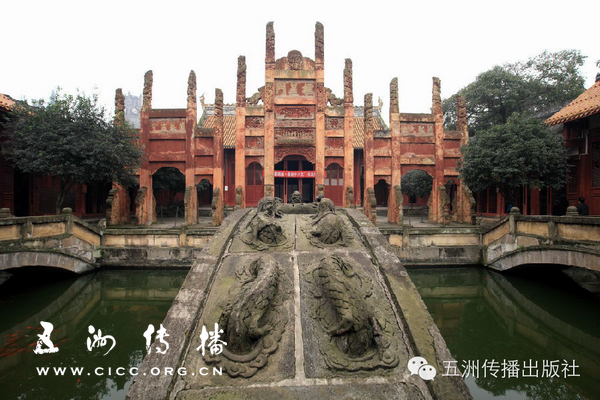 四川富顺县文庙棂星门与泮池上的九龙桥(九龙丹陛)。富顺县文庙始建于北宋年间,是中国历史记载的1800多座文庙中保存完整的29座之一,具有南方古建筑的风格。