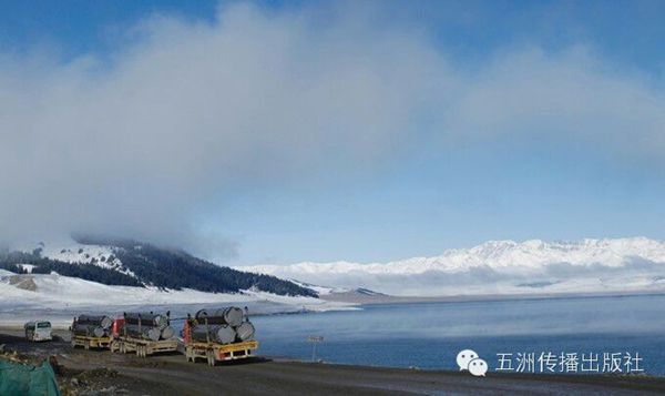 运送西气东输线路钢管的运管车经过塞利木湖畔