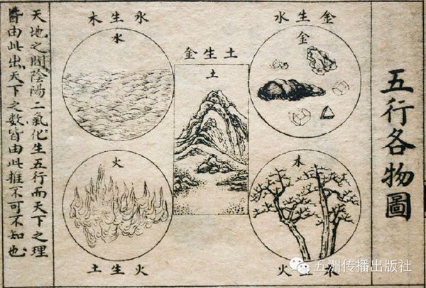 《绘图详注蒙学三字经》插图:五行各物图。民国初年锦章书局绘制。
