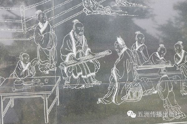 辽宁兴城古城文庙内的石刻壁画:孔子教礼乐。