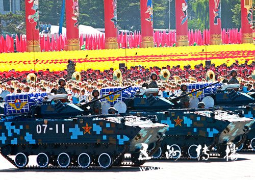 2009年10月1日,国庆60周年阅兵式上,空降兵战车方队风采卓然。