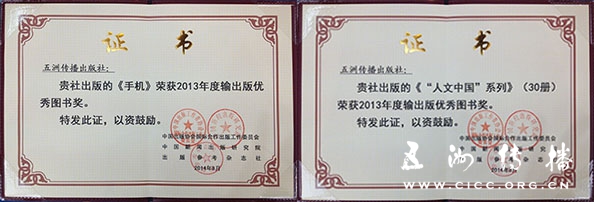 2014年8月29日,第十三届输出版引进版图书评选暨优秀人物颁奖大会在BIBF举行,100种输出版图书脱颖而出。我社共有“人文中国”(西文)、“中国著名神话故事从事(土耳其文)、《手机》(西班牙文)、《中国当代短篇小说集》(西班牙文)4种共44册入选。这是我社图书连续第七次获奖。