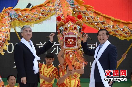 朴元淳市长和邱国洪大使共同为中国龙点睛 (图片来源:文通网)