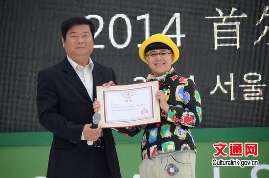 史瑞琳参赞为“金龟子”颁发“中韩文化交流爱心大使”聘书 (图片来源:文通网)