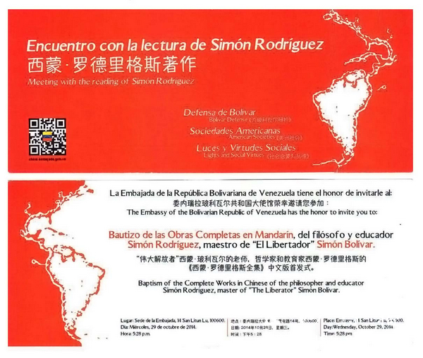 2014年10月29日下午,《西蒙·罗德里格斯全集》中文版首发式在委内瑞拉玻利瓦尔共和国驻华大使馆举行。今年7月21日,委内瑞拉总统尼古拉斯·马杜罗专门组织赠书仪式,将五洲传播出版社制作出版的《西蒙·罗德里格斯全集》作为国礼赠送给到访的习近平主席。