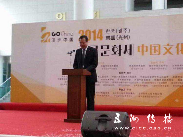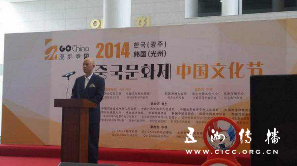五洲传播出版社文化交流中心负责人邓锦辉先生介绍了“五洲”与韩国文化界的合作交流,特别是Go China韩国落地项目,并向活动的指导单位中国国务院新闻办三局、中国文化部外联局以及所有为中国文化节的举行付出辛劳与努力的机构和个人表示感谢。