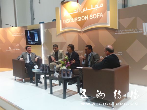 当地时间2015年5月7日下午,著名作家刘震云的小说《手机》阿文版在阿联酋阿布扎比国际书展举行了新书首发仪式。