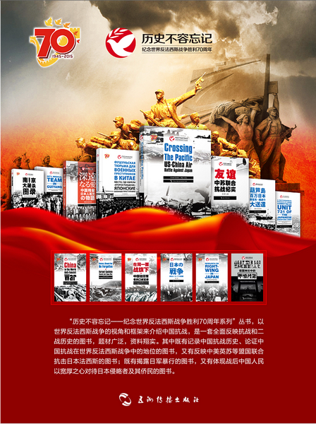 在中国人民抗日战争暨世界反法西斯战争胜利70周年之际,为“缅怀先烈、牢记历史、维护和平”,五洲传播出版社策划出版了“历史不容忘记——纪念世界反法西斯战争胜利70周年系列”丛书,以世界反法西斯战争的视角和框架来介绍中国抗战,从人类和平与正义的角度揭露日本军国主义的侵略和反人类暴行,并提醒世人警惕日本军国主义复活。