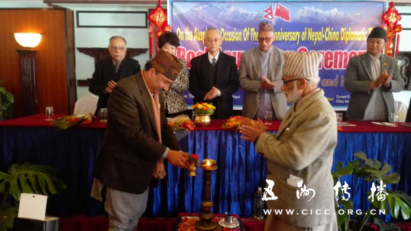 塔帕副总理兼外长和尼泊尔编辑家协会主席迪文德拉·高塔姆共同为新书举行点灯仪式