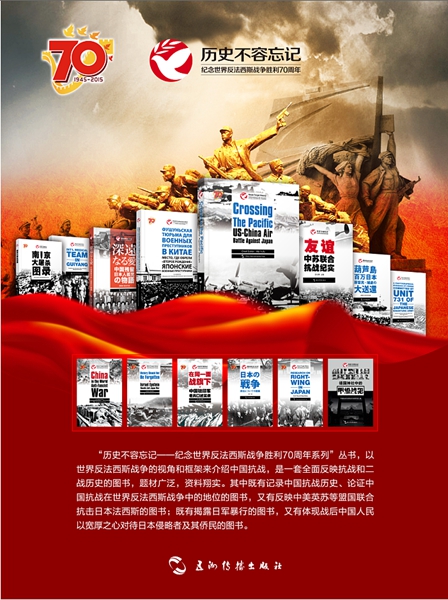 由五洲传播出版社策划出版的“历史不容忘记——纪念世界反法西斯战争胜利70周年系列”丛书,为国家基金出版项目,以世界反法西斯战争的视角和框架来介绍中国抗战,从人类和平与正义的角度揭露日本军国主义的侵略和反人类暴行。