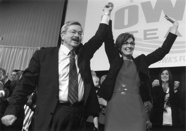 2010年11月2日,特里·布兰斯塔德与竞选搭档金· 雷诺兹(现任艾奥瓦州州长)赢得选举胜利。那天晚上,艾奥瓦州任职时间最长的州长强势回归。