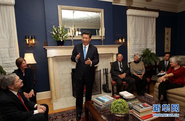 2012年习近平主席访美期间,曾拜访时任美国艾奥瓦州州长的布兰斯塔德,当时习主席送给布兰斯塔德的书就有五洲传播出版社出版的《上海故事》(英文),左下角带红领带的为布兰斯塔德(图片来源:新华网)