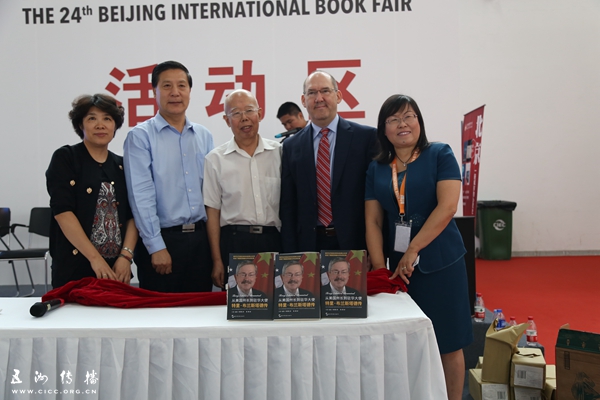 2017年8月26日,在第24届北京国际图书博览会期间举行的新书首发式上,中国美国商会会长毕万伦(alan beebe,左四)、太平洋国际交流基金会秘书长陈永龙(左三)、农业部国际合作司副司长赵维宁(左二)、五洲传播出版社副社长荆孝敏(左一)和本书特邀策划苏国群博士共同为新书揭幕。