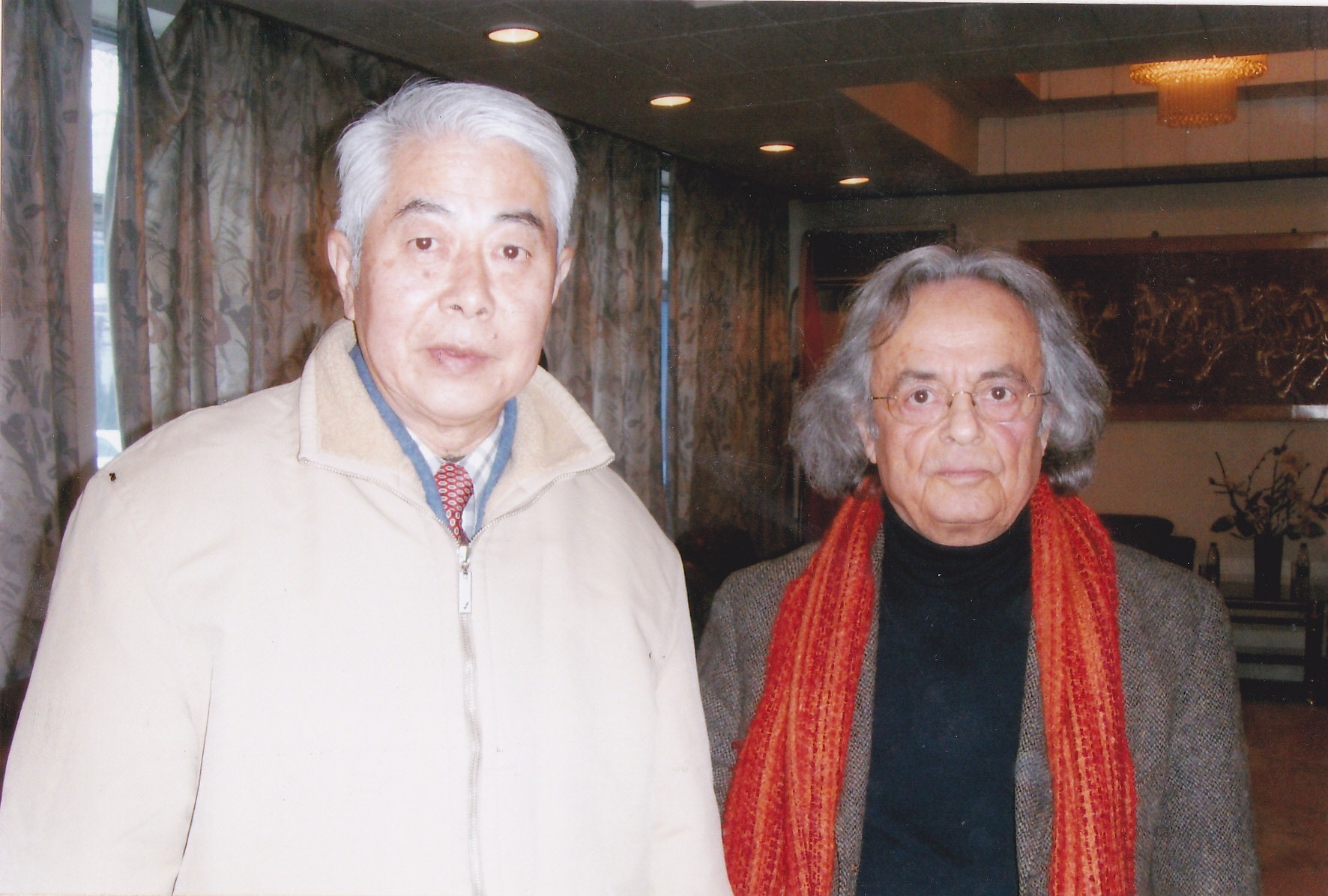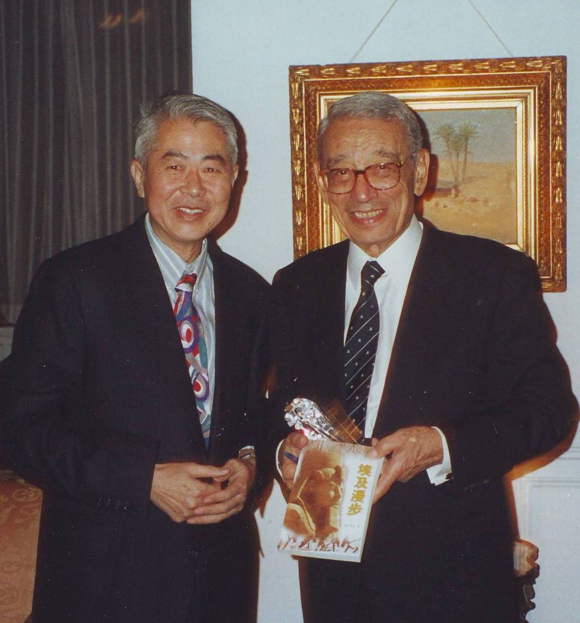 前联合国秘书长加利访华时彭龄向其赠送《埃及漫步》后的合影