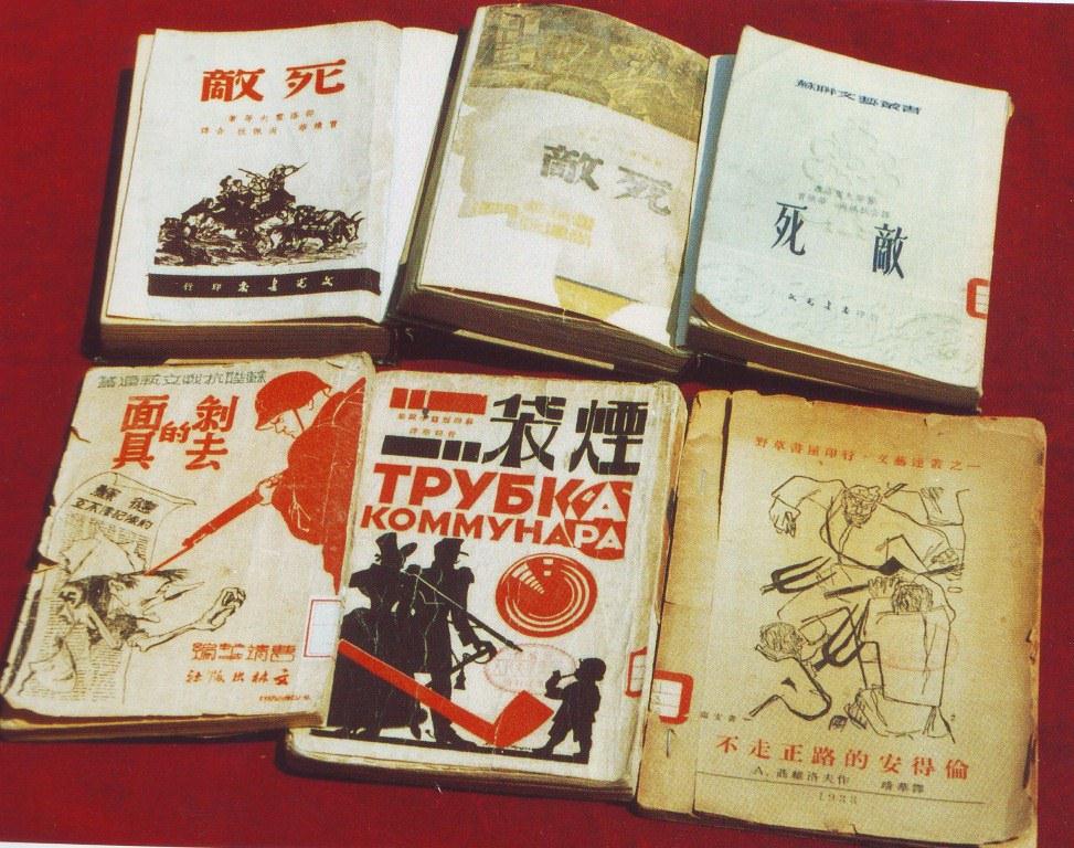 曹靖华编译的《烟袋》、《死敌》等不同版本的中译本封面