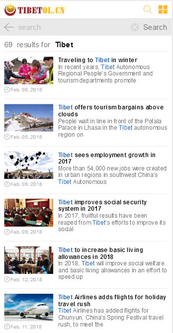 西藏在线英文手机网站,以服务全球热爱西藏的读者为出发点,内容包括文字、图片、图表、音频、视频等各类信息产品以及各类历史资料,并具有高效、灵活实用的检索、浏览及推送服务等多种功能,可全方位满足全球英文网民的阅读需求。