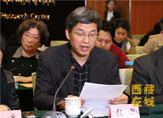 中国藏学研究中心历史研究所所长张云介绍《西藏通史》编撰情况。(马阳阳摄)