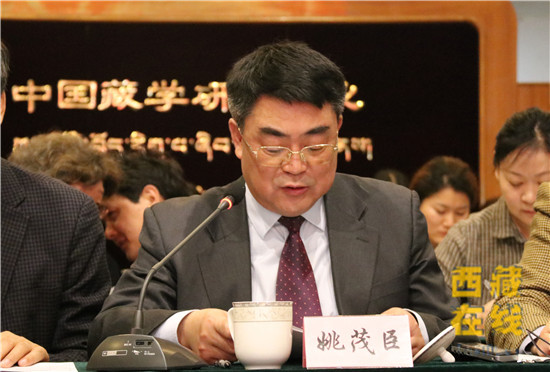 图为中国藏学研究中心党组书记安七一发表讲话。(马阳阳摄)
