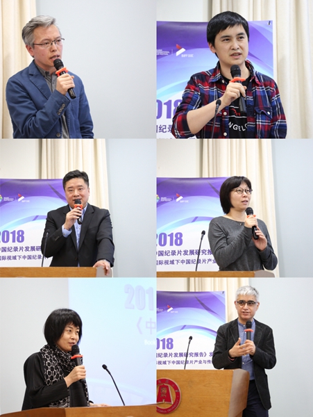 多位嘉宾在发布会上做了发言,中央电视台纪录频道节目管理部主任石世仑称《报告2018》是自己手边实用的行业指导工具书,从中能获得对事业和产业激励机制的启示及思考。上海纪实频道总监干超认为2017年是纪录片转型的一年,从内容、用户、平台和市场上都有不同往年的经验可以总结,《报告2018》中用数据充分论证并反映了这个现象。北京电视台纪实频道主任严崴希望建立中国公众对纪录片的信赖。中国传媒大学教授张雅欣认为《报告2018》做到了翔实的描述、务实的输出和扎实采访,是学界和行业都期待的一本读物。旅英华人导演书云认为《报告2018》(国际版)的发布是一次非常大的突破,国外纪录片从业者对此书也表示了高期待。探索传媒亚太网副总裁魏克然表示研究《报告2018》不仅可以为行业提供最新鲜的一手数据,也可以为高校师生的学习研究带来帮助。