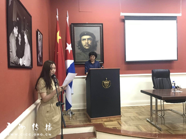 在新书首发式上,五洲传播出版社荆孝敏副社长发表了致辞,并表示,五洲社作为出版西语图书最多、与古巴合作最早的中国出版社,今后将在更多层次、更深领域与古巴进行长期合作,五洲社愿为两国文化交流尽最大努力,为中古两国的读者奉献更多优秀的文化精品。