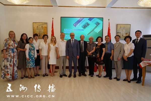 在白俄罗斯共和国总统卢卡申科阁下来华出席上海合作组织青岛峰会之际,由五洲传播出版社、外交笔会联合编辑出版的“我们和你们”丛书之《中国和白俄罗斯的故事》中、俄文版6月4日上午在白俄罗斯驻华使馆举行首发式。白俄罗斯驻华大使基里尔·鲁德、外交笔会副会长刘宝莱、五洲传播出版社副社长荆孝敏和本书主编王宪举研究员分别致辞。中国前驻白俄罗斯大使吴筱秋、吴虹滨等出席首发式。