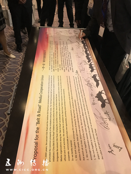 与会代表签署“一带一路”媒体传播联盟合作倡议书