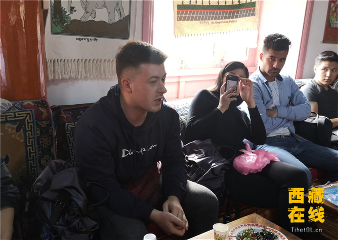 图为中共迪庆州委常委、宣传部长刘荣(右一)与留学生亲切会谈。(方如婷 摄)