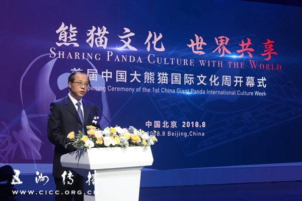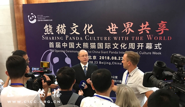 8月23日,以“熊猫文化,世界共享”为主题的“首届中国大熊猫国际文化周”在北京中华世纪坛开幕。此次活动由国务院新闻办公室指导,国家林业和草原局、中国人民对外友好协会、四川省人民政府、陕西省人民政府和甘肃省人民政府联合主办,中国大熊猫?;ぱ芯恐行?、五洲传播中心和四川省人民政府新闻办公室承办。