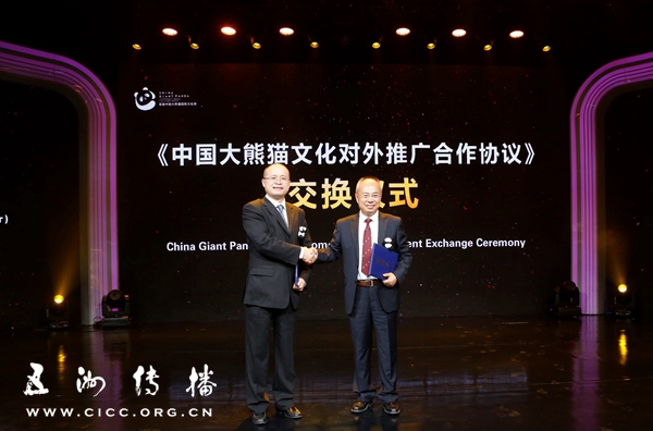 在开幕式上,五洲传播中心与中国大熊猫?;ぱ芯恐行墓餐⑵鹆?ldquo;中国大熊猫国际形象全球招募”活动,签订并交换了《中国大熊猫文化对外推广合作协议》,旨在双方强强联合,优势互补,更好地向世界解读、诠释熊猫文化,打造中国大熊猫国际品牌形象。
