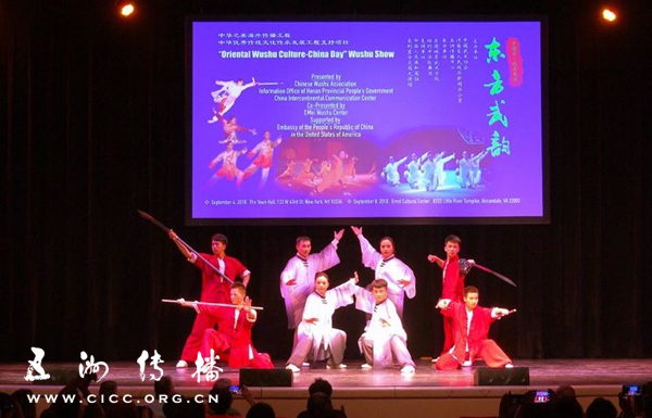 当地时间9月4日晚,纽约曼哈顿中城Town Hall剧场,一场汇集众多武术高手和太极名家的武术展演《东方武韵》在这里举行。此次大型武术表演由中国武术协会、河南省人民政府新闻办公室、五洲传播中心主办,美国峨嵋武术学院和纽约中华歌舞团承办,吸引了来自纽约地区的近千名各族裔观众和武术爱好者前来欣赏。中国驻纽约总领馆文化参赞李立言等嘉宾莅临现场。