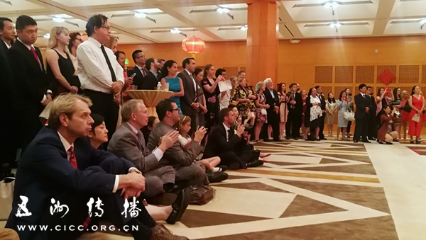 舞台上,刚健有力、刚中有柔的拳术,身法秀如猫、扎枪如斗虎的枪术,以静制动、无形似有形的太极......让现场观众赞不绝口,掌声如浪。“演出太精彩了,简直不可思议”,嘉宾埃德温娜·罗杰斯对中华武术留下了深刻印象。嘉宾索尔·奥尔文·伯克是名武术爱好者,看了中国武术代表团的演出后非常激动,希望有机会可以去中国看看少林和太极的发源地。方虹表示,表演把中国武术传统与现代元素结合得非常巧妙,水准极高,希望在使馆今后举办类似公共外交活动时能再次邀请中国武术代表团展演。