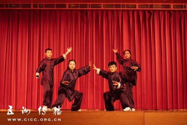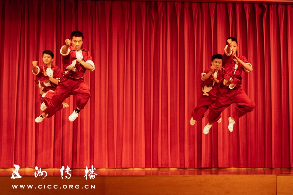 交流活动后,由中国武术协会、河南省人民政府新闻办公室、五洲传播中心联合主办的《东方武韵》武术表演晚亮相“中华讲坛”现场,为在海外传播中华文化、讲好中国故事撑场助威。这也是“中华讲坛”有史以来第一次开设现场表演环节,无疑成为了当晚活动的一大亮点。