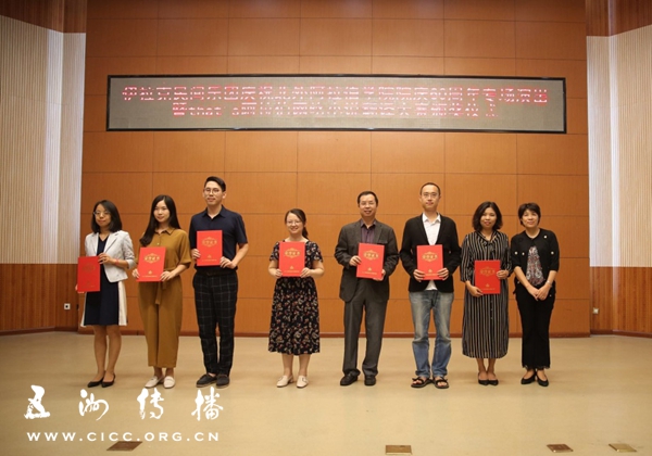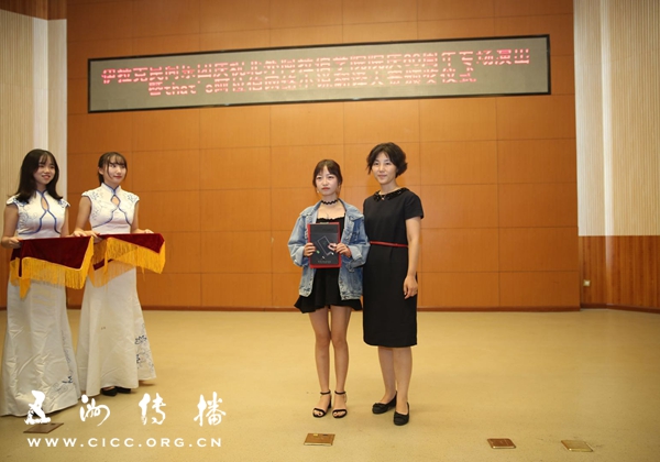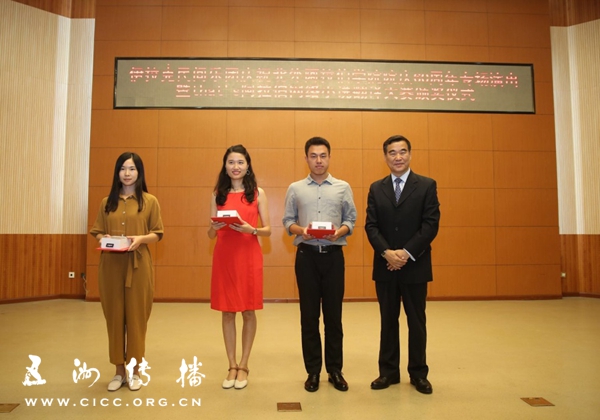 五洲传播出版社副社长荆孝敏与最佳组织奖获得者合影。