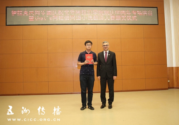 伊拉克驻华大使艾哈迈德·贝尔瓦利先生(右一)与特等奖获得者合影。