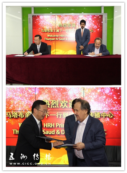 会后,五洲传播中心陈陆军主任与TVG集团主席马塔布亲王殿下签署了《中沙媒体合作谅解备忘录》。此次到访五洲并见证签约的还有来自中国国际文化交流中心及沙特阿拉伯王国驻华大使馆的代表。