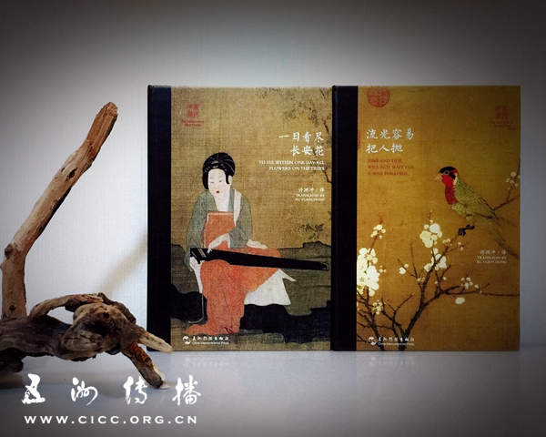 中英文双语唐诗宋词,与素雅古画在方寸间完美结合