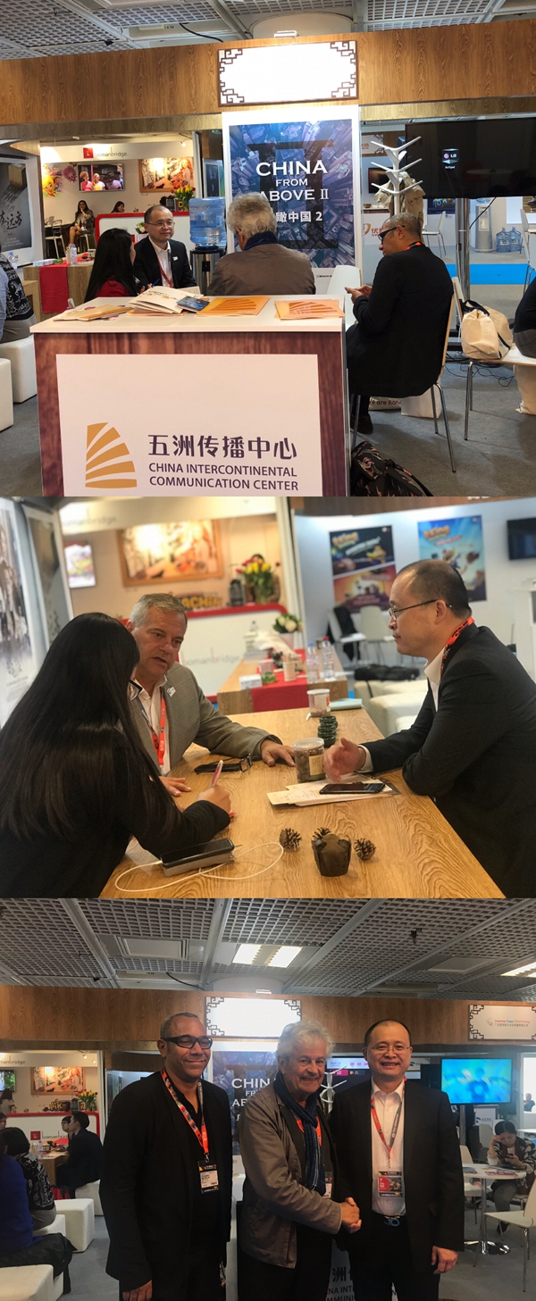 2018年10月14日至18日,法国秋季戛纳电视节(MIPCOM)举行,中国担任本届电视节主宾国。中国国务院新闻办公室和国家广播电视总局共同主办了系列活动,以“精彩故事 源自中国”为主题,向世界展示中国优质影视内容,分享中国影视最新发展成果。本届电视节共有来自中国的50多家机构、近500人参展。五洲传播中心作为中国联合展台重要参展单位之一,参加了电视节“中国新作品推介会”“国际影视合拍高峰论坛”等多场活动,与英国电视行业协会、国家地理频道、美国赛点集团等20多家影视机构进行了合作会谈,取得了丰硕的成果。