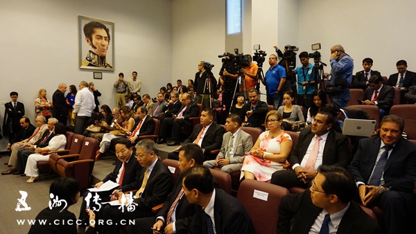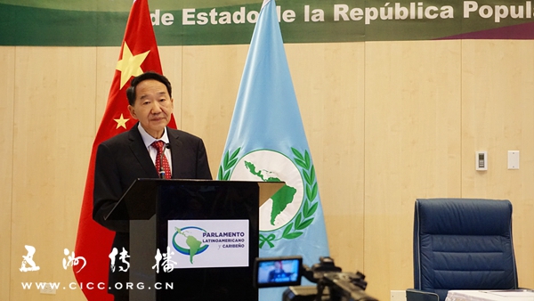 中共中央宣传部副部长蒋建国在致辞中表示,拉美议会“中国馆”是中拉人文交流结出的最新硕果,为拉美各国民众了解中国打开了一扇新窗口。中国与拉美虽然远隔重洋,但有着合作发展、互利共赢的共同意愿。拉美是21世纪海上丝绸之路的自然延伸,拉美各国是“一带一路”建设不可或缺的重要参与者。因此,他呼吁中拉以共建“一带一路”为契机,全面深化各领域务实合作,携手打造中拉命运共同体,推动中拉关系走向更加美好的未来。