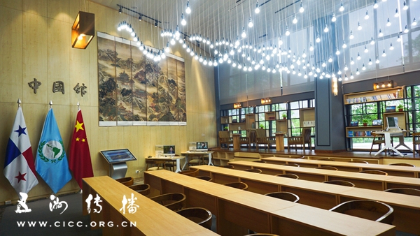 “中国馆”是中央宣传部(国务院新闻办公室)打造的对外介绍中国、促进中外交流的重要平台,是帮助国际社会认知中国、理解中国的一扇窗口,在推动中华文化海外传播和中外文明交流互鉴方面发挥了积极作用。拉美议会“中国馆”是我在全球建成的第19个中国馆,也是继秘鲁、墨西哥和古巴之后,在拉美地区设立的第4个“中国馆”。该馆由五洲传播中心文化交流中心具体承建,面对馆内层高5.9米的高空作业以及不满一个月的建设周期,我社高度重视,全社各部门积极配合,不分昼夜加班加点,举全社之力在二十多日内完成图书配套、设备采购调试、书架桌椅定制、馆内装饰、物品发送清关运输等等一系列工作,如期完成该馆建设,顺利开馆。该馆的整体设计凸显中华文化特色,兼顾传统与现代,同时适当融入拉美文化元素,配备了介绍中国经济、政治、文化、社会、生态、科技等方面的图书和音像影视作品2000余种,文种涵盖中、西、英、葡四种语言,包括《习近平治国方略:中国这五年》西班牙文版影视片、《习近平治国理政》一二卷、《一带一路与拉丁美洲:新机遇与新挑战》图书等精品出版物,另外还配备了数万种电子图书、期刊等内容,为拉美地区全面深入了解中国提供了良好平台。