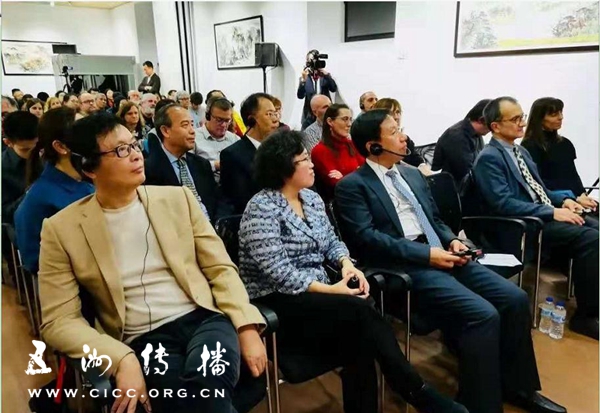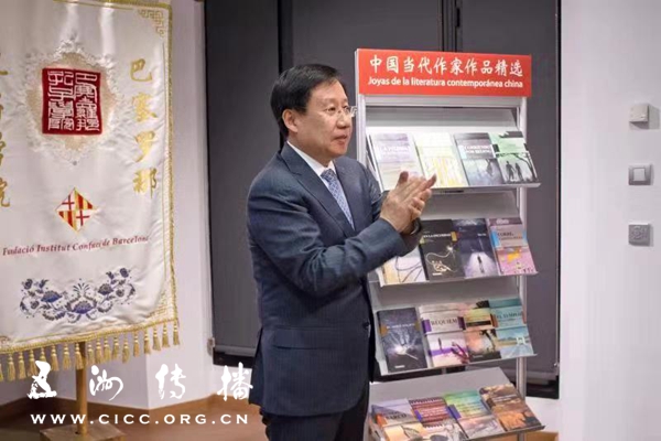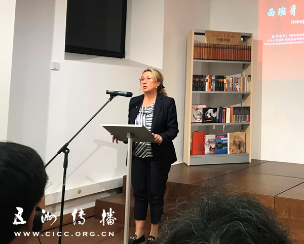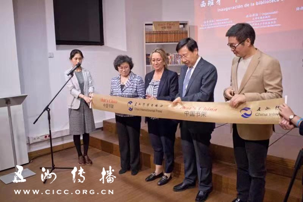 中外嘉宾共同为西班牙“中国书架”揭幕仪式剪彩