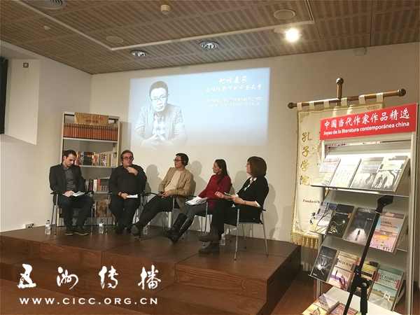揭幕仪式后,麦家与西班牙汉学家、出版人等进行了“对话麦家——全球视野下的中国文学”汉学家、作家与出版人圆桌论坛。麦家是在西班牙影响比较大的中国当代作家,他的小说《解密》西文版自2014年由全球最大的西文出版社普拉内塔出版以来一直畅销,首版三万册早已售罄。他的另一部小说《暗算》的西文版和《解密》的加泰罗尼亚文版也由普拉内塔出版。麦家已经成为西语地区读者了解中国当代文学的一个视角。