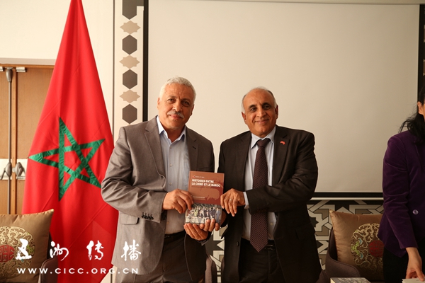 摩中友协主席哈利勒博士向哈桑二世大学孔子学院外方院长吉哈德赠书