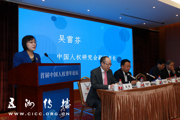 中国人权研究会副秘书长吴雷芬在开幕式上致辞(摄影:焦飞)