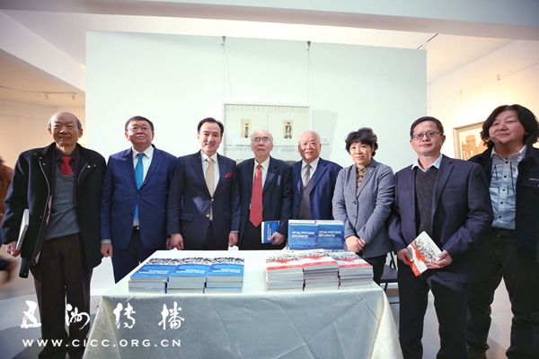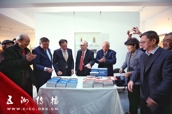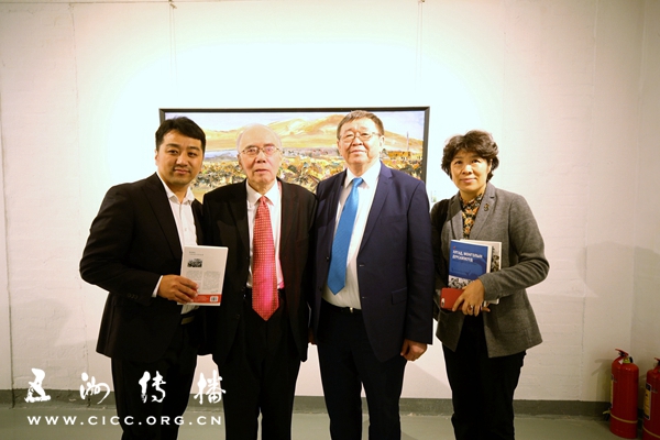 蒙古国驻华大使冈呼雅格(右2)、中国前驻蒙古国大使黄家骙(右3)、五洲传播出版社副社长荆孝敏(右1)在首发式现场合影