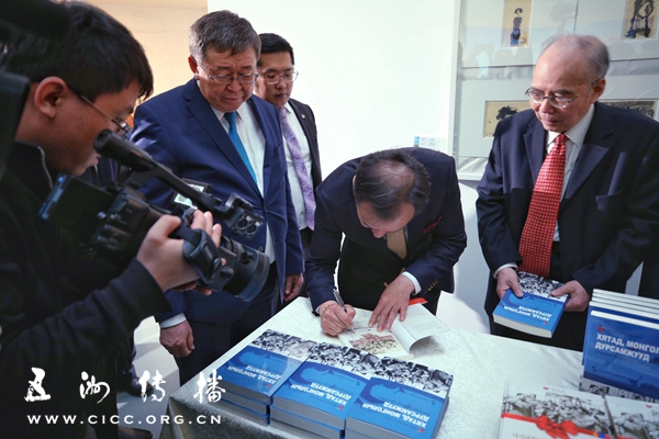 蒙古国外长朝格特巴特尔为主要嘉宾签名赠书。
