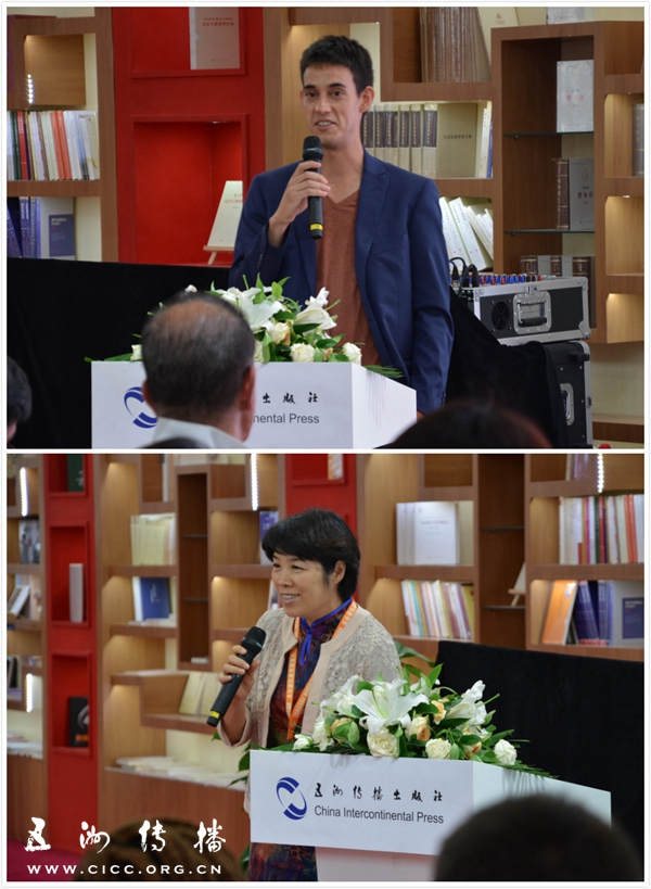《汉魏六朝诗与诗意画》的西文译者罗豹鹿先生与“中华之美”丛书出版人荆孝敏发表讲话