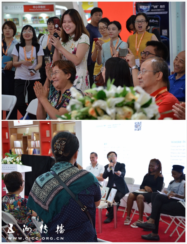 活动现场,分别来自加拿大、贝宁、菲律宾、肯尼亚的5位外国嘉宾与主持人、现场观众一起,分享了他们接触和学习中国文化尤其是中国诗歌的心得和体会。他们时而畅谈,时而朗诵,时而演唱,以多种语言、多种方式表达了对中国诗歌的喜爱和情感上的共鸣。来自贝宁的北京师范大学留学生艾力舍喜爱中国诗人李白,他激情澎湃的《将进酒》朗诵,使现场气氛达到高潮?;疃顺」菽谥诙喙壑谧ぷ愎劭?,还有现场观众即兴参与,这成为当日BIBF活动中的一个亮点。在这里,我们看到了世界不同文明的交流,看到了外国朋友学习中国文化的热情。