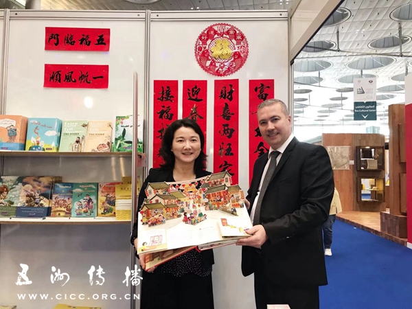 本次书展正值中国春节到来之际,剪纸、福字、灯笼、中国结等春节元素,在五洲社展位上烘托出了浓浓的节日气氛。我社和安徽少年儿童出版社最新合作推出的3D立体翻翻书《欢乐中国年》英文版备受青睐,从小孩到老人,各个年龄段的读者朋友都被其精巧的工艺和有趣的内容吸引,纷纷驻足观看。书展期间我社还举行了该书的推广体验活动,通过书中书、画中画、翻翻、拉拉、黏贴、立体等多种形式让国外读者体验贴对联、挂灯笼、年夜饭、放鞭炮、穿新衣、挂灯笼、发红包、看舞狮、拍全家福等传统年俗活动,了解中国新年习俗和中国传统节日文化,以此展示中国传统文化之美。