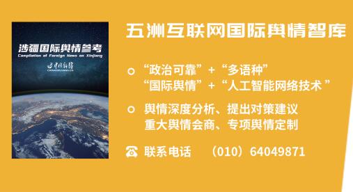 五洲舆情项目部成立于2000年,在长期从事外宣舆情服务基础上,形成“政治可靠”+“多语种”+“国际舆情”+“人工智能网络技术”等专业优势。该部致力于为用户采集并呈现最有价值的国际舆情信息,并在舆情深度分析、提出对策建议、重大舆情会商、专项舆情定制等领域打造具有独特优势的五洲舆情品牌。