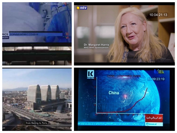 系列短视频《中国抗疫志》通过《丝路时间》栏目以蒙古语、匈牙利语、俄语、波兰语、斯瓦西里语、英语、葡语在内的8种语言,通过哈萨克斯坦STV电视台、蒙古国NTV电视台、匈牙利ATV电视台,白俄罗斯第八频道、俄罗斯金砖电视频道TV BRICS、坦桑尼亚SIBUKA电视台、亚美尼亚TSAYG电视台、阿富汗喀布尔新闻电视台、吉尔吉斯斯坦德隆电视台、波兰??馑沟缡犹?、澳门广播电视公司等11家机构顺利播出。此外,该系列节目还将继续面向加拿大和莫桑比克2个国家的观众播出。